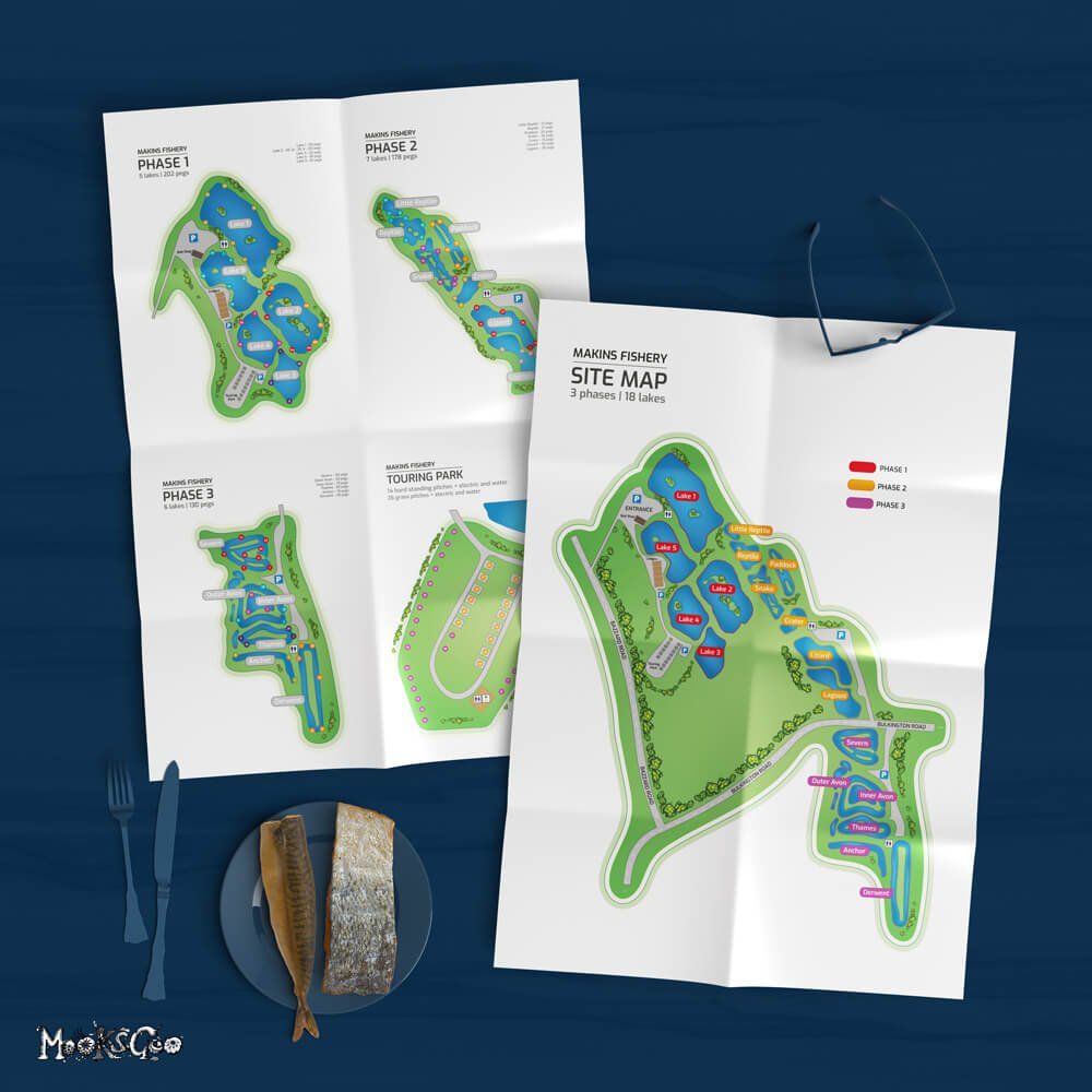 The overall fishing complex is enormous so I created very clear, easy to read, colour coded maps for their visitors, both on the website and for signage purposes.